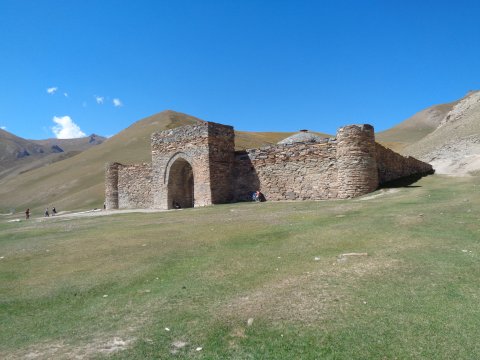 I det sydøstlige Kirgisistan, tæt på grænsen til det vestlige Kina, ligger Tash-Rabat, et af Centralasiens mest interessante monumenter fra karavanetrafikkens storhedstid. Bygningen, som fremstår næsten intakt, modsiger lidt den opfattelse, jeg har set på skrift flere gange, at Kirgisistan ikke byder på kulturseværdigheder af betydning, men kun på natur og landskaber. Tash-Rabat er et gammelt såkaldt caravanseri. Det var på sådanne 'rastepladser' de store karavaner stoppede for at hvile, søge i sikkerhed for røveriske overfald eller i ly, når vejret var dårligt.