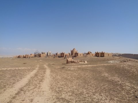 Du ser dem overalt i Kirgisistan: hvad der på afstand ligner små byer pakket med fine små lerstenshuse viser sig ved nærmere eftersyn at være gravpladser. Typisk ligger de lidt fra landsbyen, ofte på en bakkeskråning, og sædvanligvis gør de større indtryk på os vejfarende end de landsbyer, de tilhører. Gravstenene og de store mausolæer er typisk pyntet med symboler fra vidt forskellige traditioner og ideologier. Ofte prydes et og samme gravsted med både en islamisk halvmåne, en kommunistisk rød stjerne eller hammer og segl og en hovedskal fra et dyr. Det sidste som et vidnesbyrd om, at landet ikke helt har sluppet en animistisk og shamanistisk religiøs fortid. Et falmet foto eller en sirlig gravering på en gravsten af den afdøde i søndagstøj er et lån fra russiske traditioner.