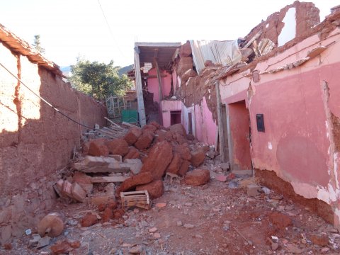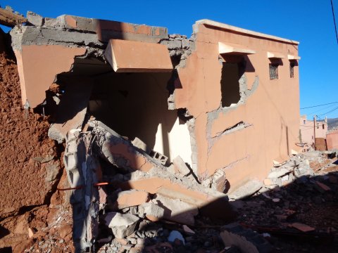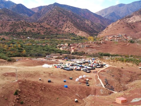 Allerede på turens første cykeldag fik jeg syn for sagen: skaderne efter det jordskælv, som havde ramt området den 8. september sidste år, er enorme. Lavlandet både nord og syd for bjergene samt storbyerne Marrakesh og Taroudant er sluppet nådigt, men mange bjergbyer, hvor huse traditionelt bygges af ler, er næsten jævnet med jorden. Med bistand fra FN har myndighederne rejst teltlejre og sørget nødtørftigt for lægehjælp og det sanitære. Bulldozere og gravkøer er i fuld sving overalt, men samtidig er det tydeligt, at det vil tage lang tid at rydde op og bygge nyt, så alle igen får rigtigt tag over hovedet.